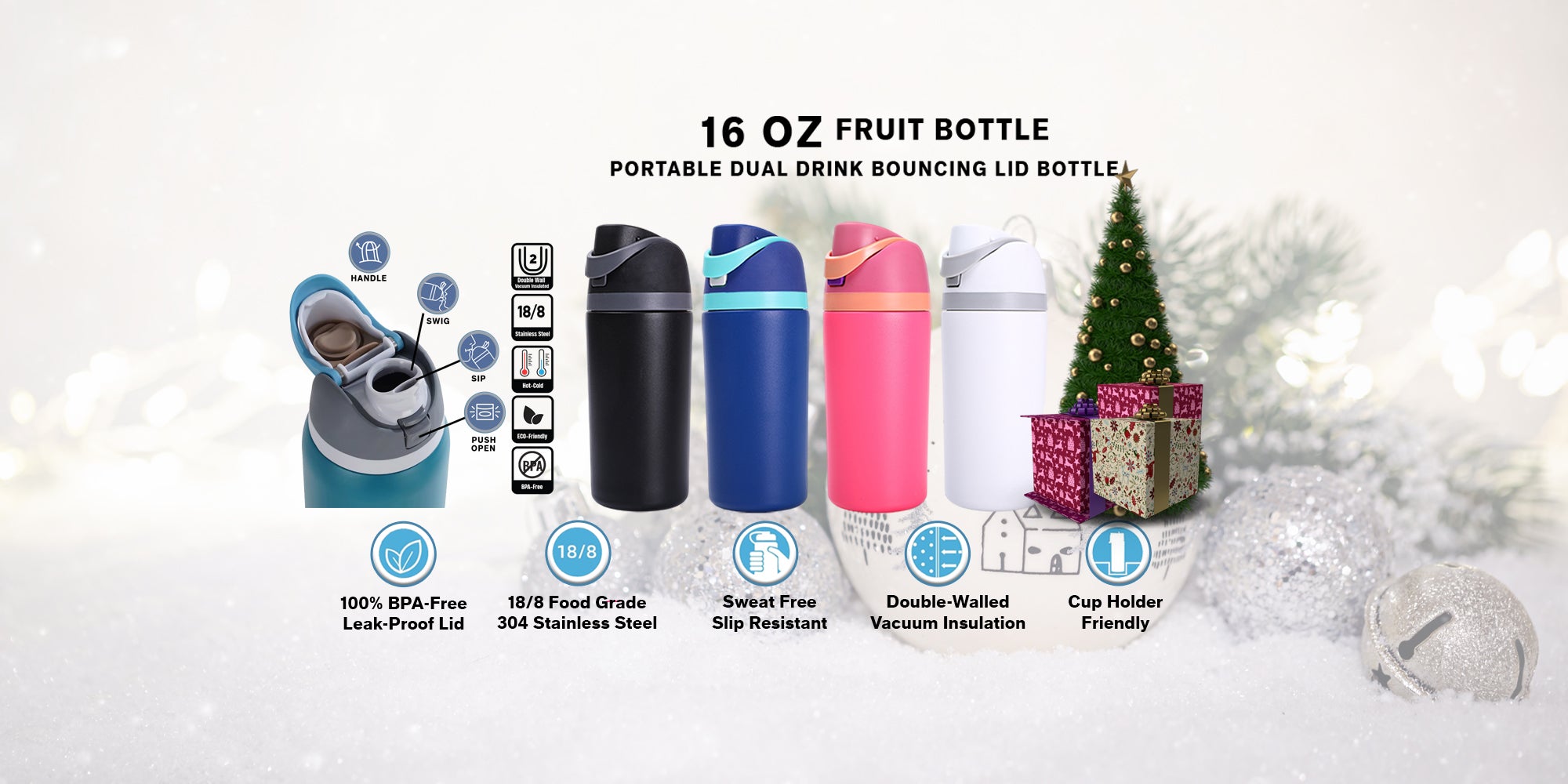 EnduroSip Kids Fruit Bottle Insulated Stainless Steel Water Bottle with Straw for Sports, Travel, and School, BPA-Free Sports Water Bottle, 16 oz