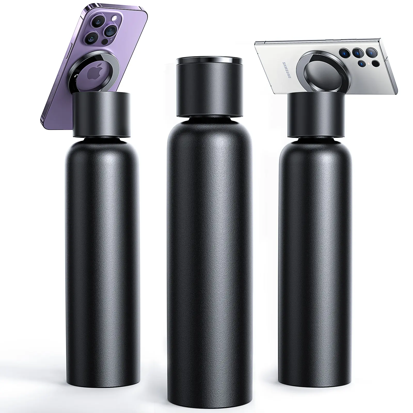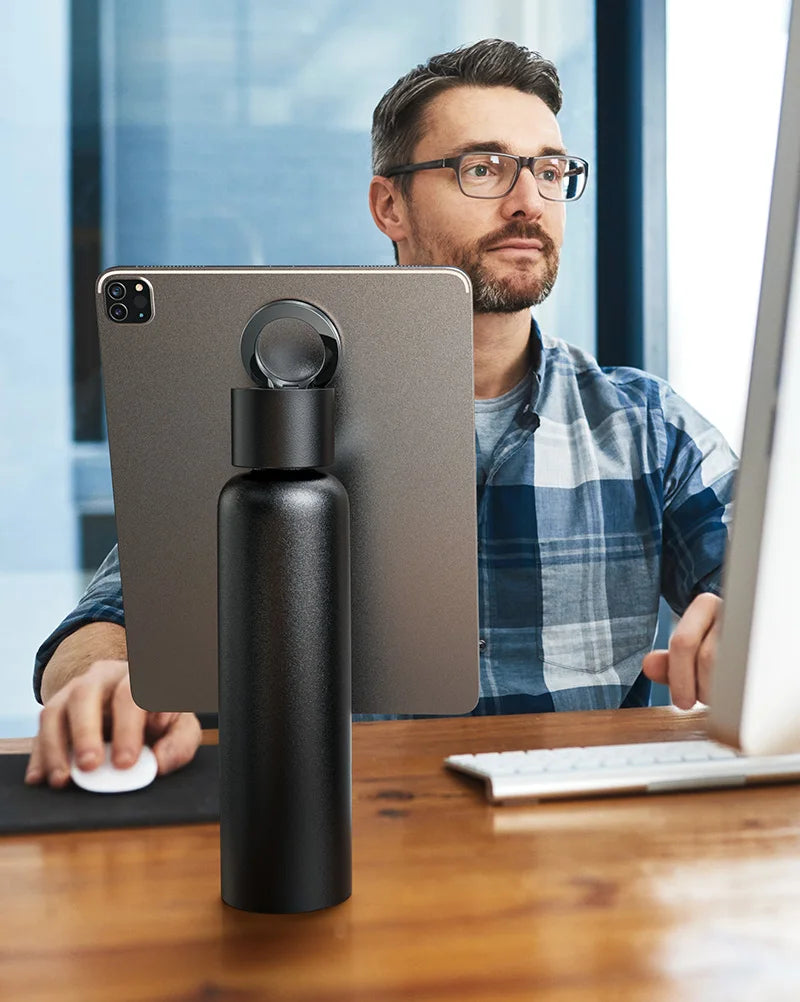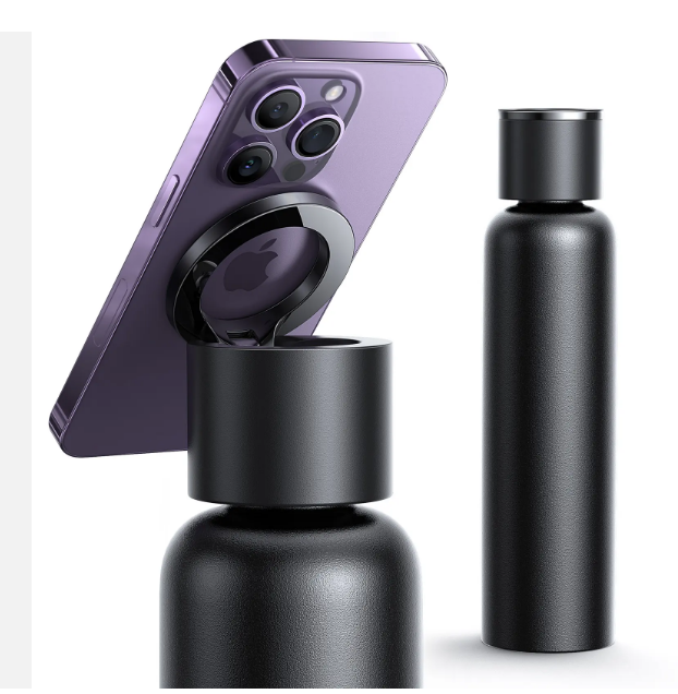 - The Bottle combines a premium double-wall stainless steel water bottle, the kind we carry with us every day, with an ultra-strong MagSafe phone mount that's always there when you need it. The Bottles advanced bottle tech will keep your drink hot or cold all day long, and its integrated pro-grade magnetic tripod mount securely and conveniently holds your device whether the bottle is empty or full. The ring also works as a carry handle.