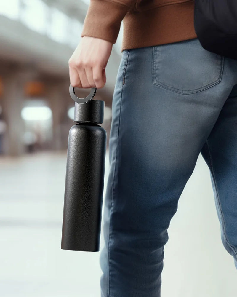 - The advanced bottle tech will keep your drink hot or cold all day long, and its integrated pro-grade magnetic tripod mount securely and conveniently holds your device whether the bottle is empty or full. The ring also works as a carry handle.