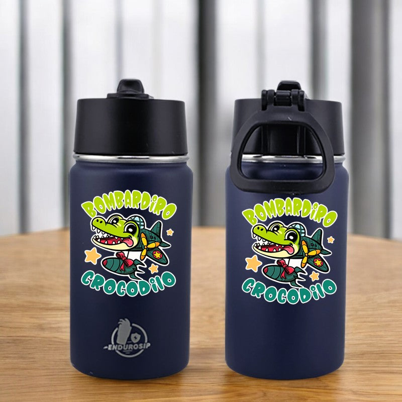 EnduroSip® 12 oz Water Bottle – Bombardiro Crocodilo Italian Brainrot | Double-Sided UVDTF 3D Permastickers