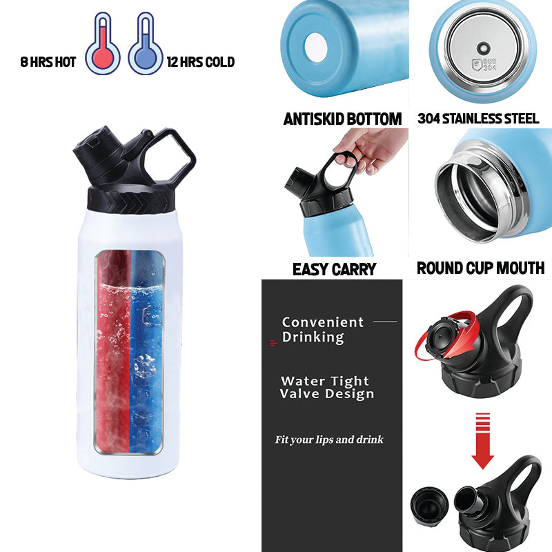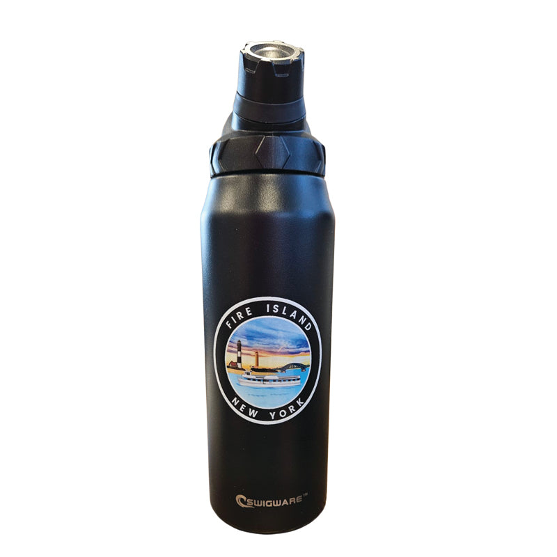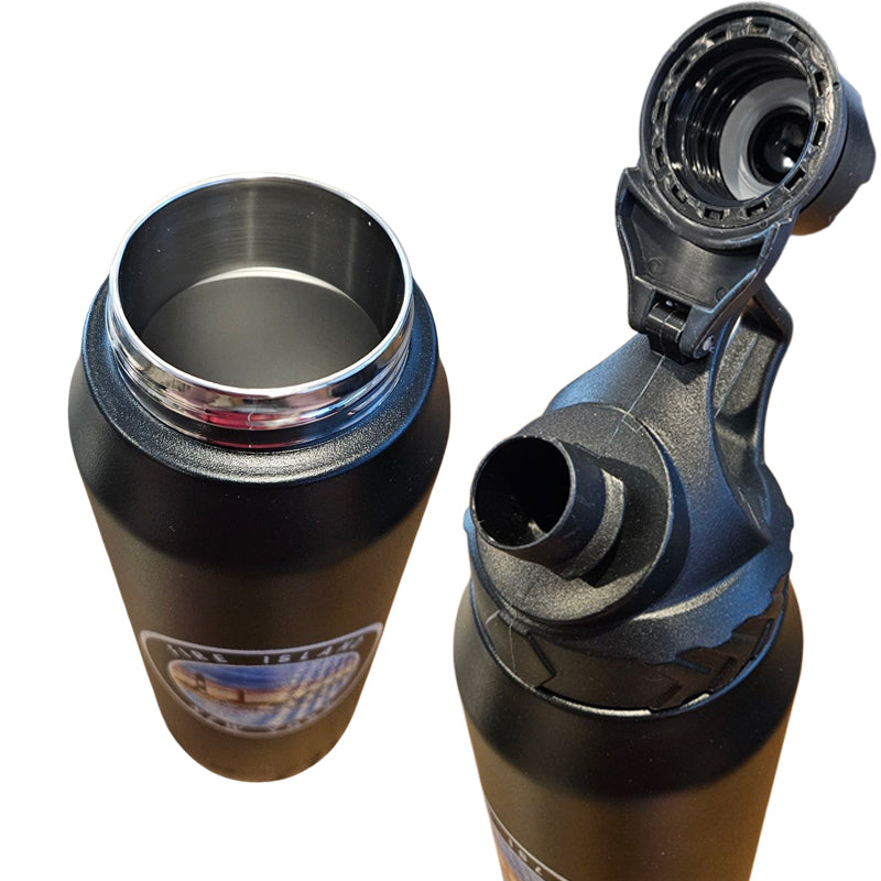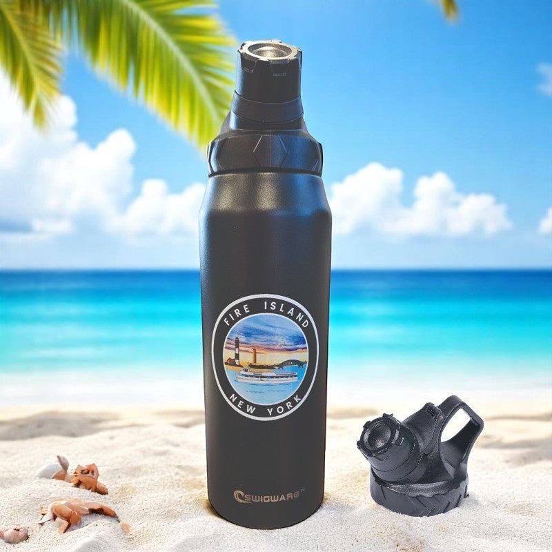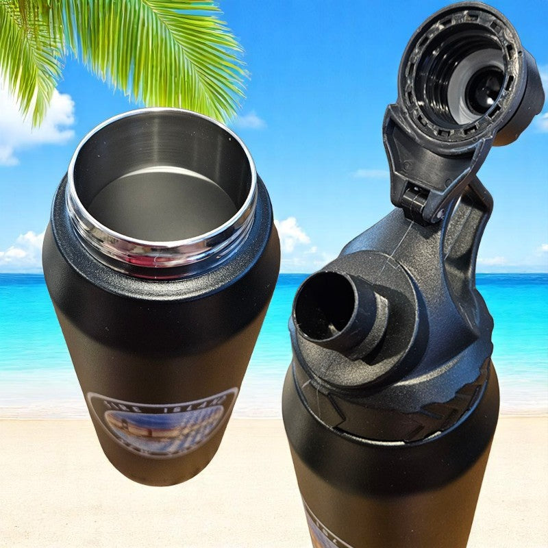 Fire Island NY 950 ml Large Capacity Stainless Steel Vacuum Cup, Portable Handle, Sports Water Bottle Black