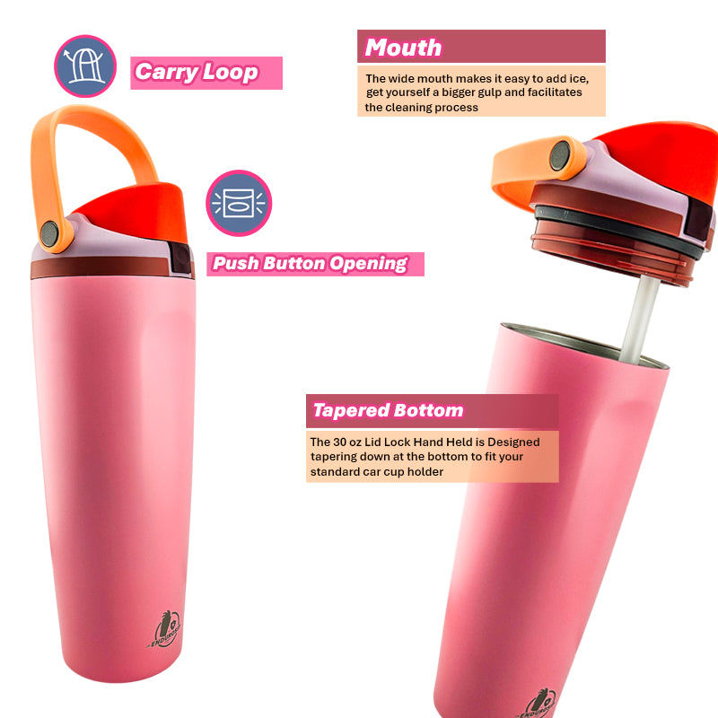 30 oz Lock Lid Handheld Stainless Steel Tumbler with Handle & Straw – EnduroSip