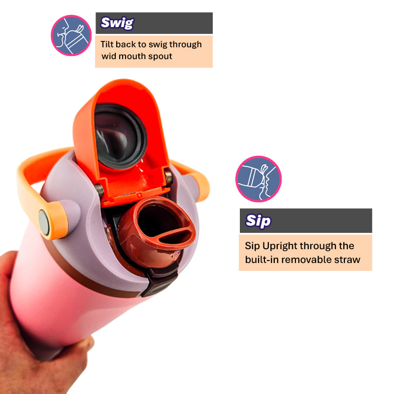 Dual Drinking Options – Chug from the spout or sip smoothly with the included straw. Triple-Layer Insulation – Keeps drinks ice-cold for hours or hot until the last sip.