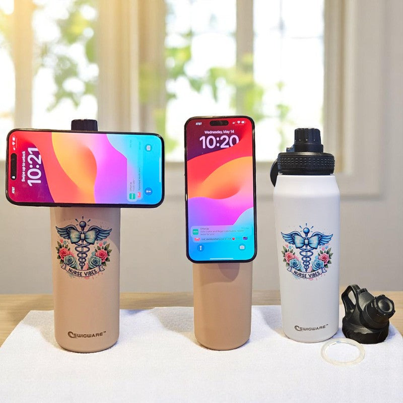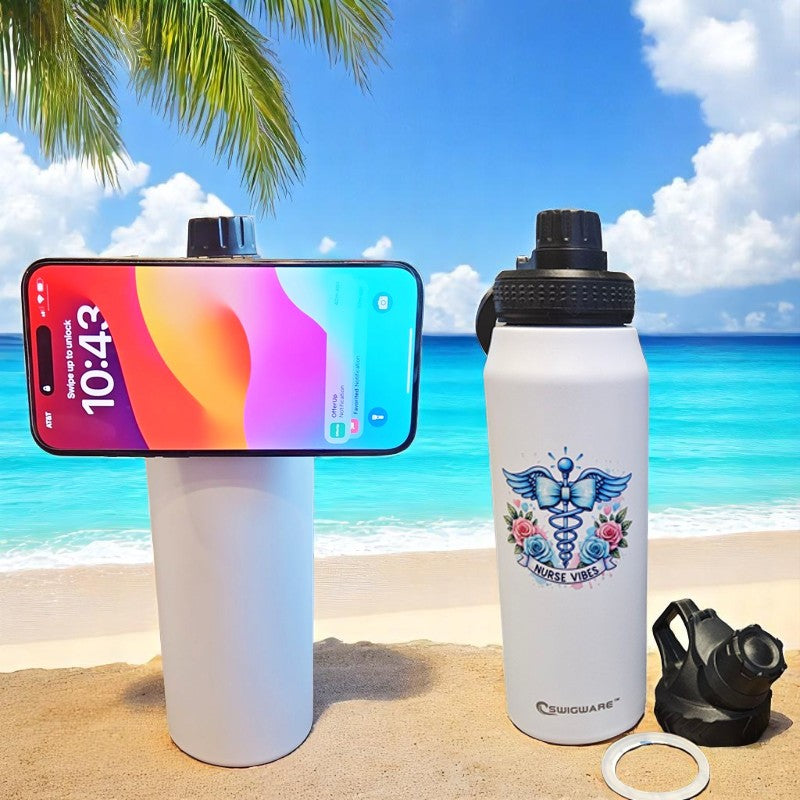 Magnetic Lid RN Nurse Vibes 950 ml Large Capacity Stainless Steel Vacuum Cup, Portable Handle, Sports Water Bottle White