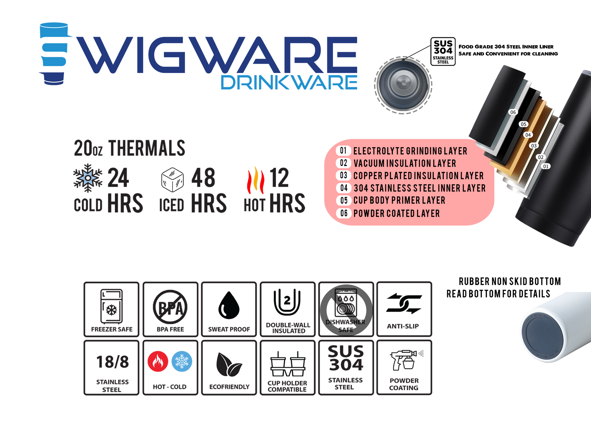 - NOT Dishwasher Safe (Due to Rubber Bottom)